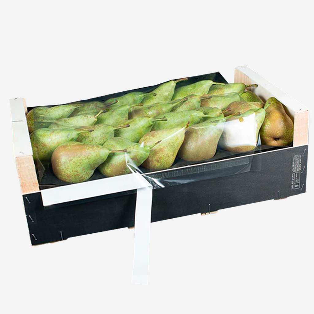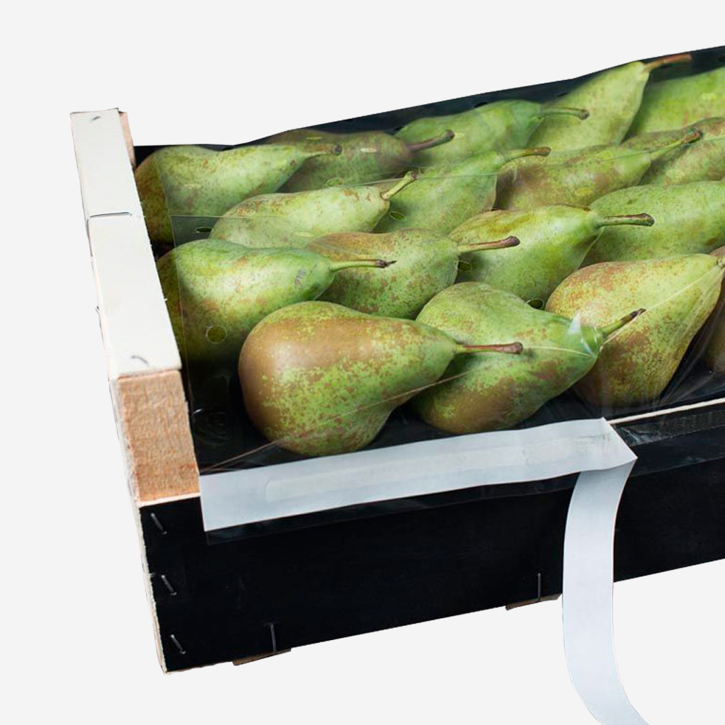 Lámina transparente cuyas bandas adhesivas permiten su fijación en los bordes de la caja para garantizar la protección del producto.
